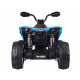 Pojízdné vozidlo se spouští pomocí červeného tlačítka, po jeho spuštění dítě uslyší zvuk startujícího motoru.Quad jede po stisknutí plynového pedálu v pravé stupačce.Čtyřkolka má: