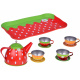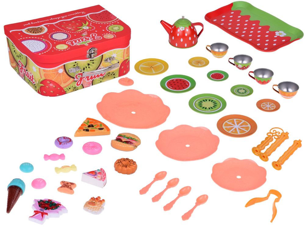 Sada obsahuje vše potřebné k vytvoření ideálního stolního servisu a pohostění chutnými občerstveními. Sada vyrobená z kovu s důrazem na každý detail. Pochoutky a mísa vyrobené z plastu lákají svým vzhledem ke hře spojené s učením.Sada obsahuje: